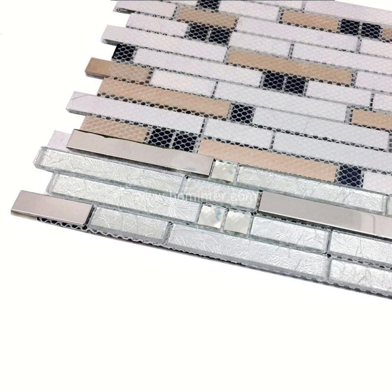 This tile was designed based on clear glass chips and stainless steel which has ceramic base. When adding metal chips in, it makes the tile stunning. The glass chips are also new designed which may have wire printed on back, diamond-shaped glass chips make the tile luxurier. The general sizes for these mosaic chips are 15 x 15 mm squared, 15 x 48 mm , 15 x 98 mm striped. Each sheet of the tile is approximately 12 x 12 Inches and mesh mounted, non-sanded grout for installation. The tile is very beautiful used for bathrooms, spas, kitchen backsplashes, accent walls, showers etc.