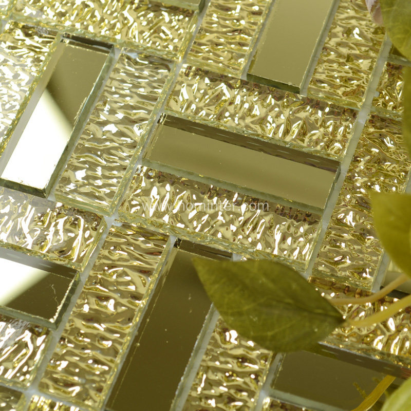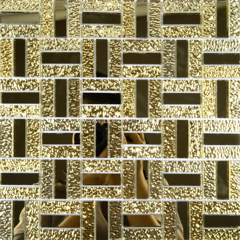 This tile was designed based on glass chips which have both finish: silver coated glass and clear crystal glass. When coating the glass chips, it makes the finish looks like metal, but it is stronger..