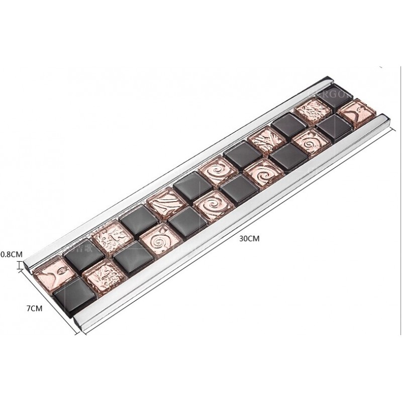 Collection: Metallic and Glass Mosaic Tiles; Material: Metal and Glass; Color: Black and Gold; Shape: Strip; Size: 300mmx70mm; Thickness: 8mm
