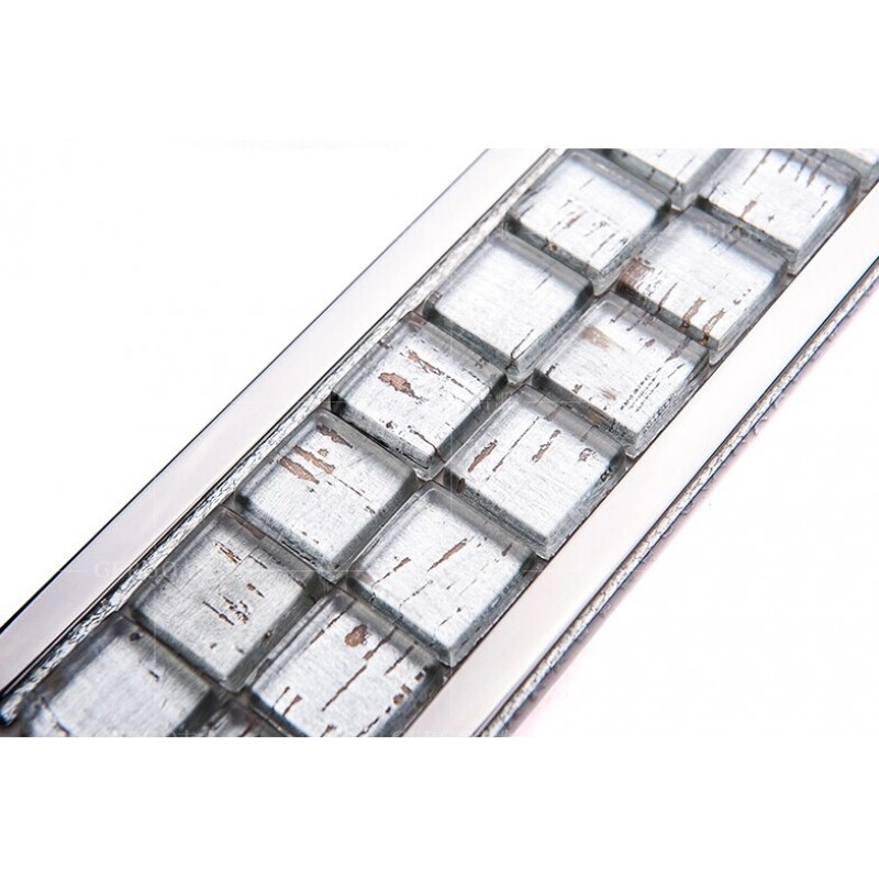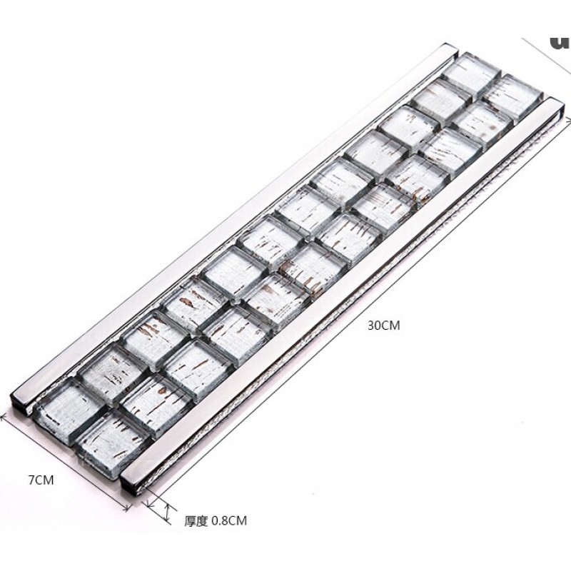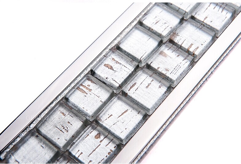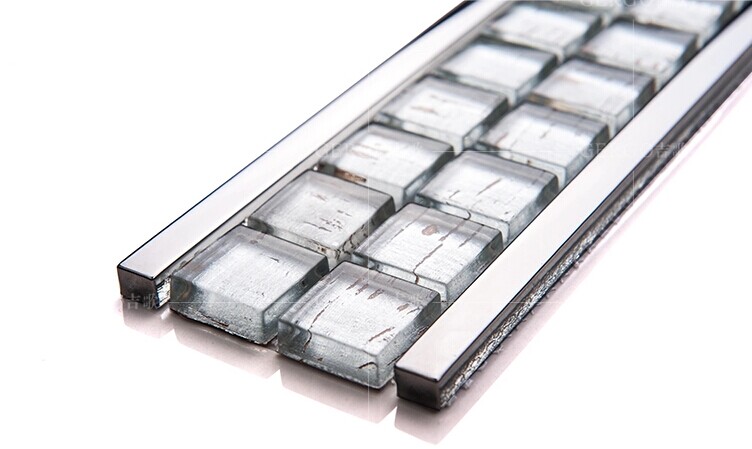Collection: Metallic and Glass Mosaic Tiles; Material: Metal and Glass; Color: Silver; Shape: Strip; Size: 300mmx70mm; Thickness: 8mm