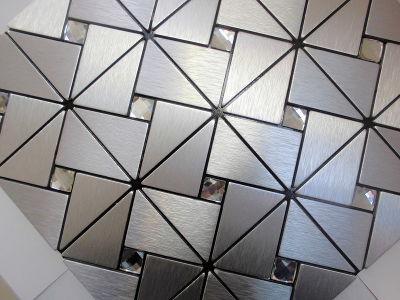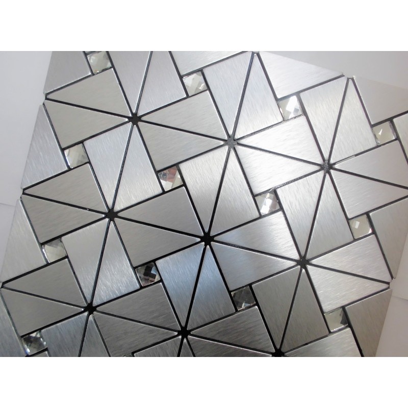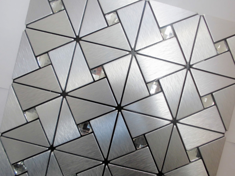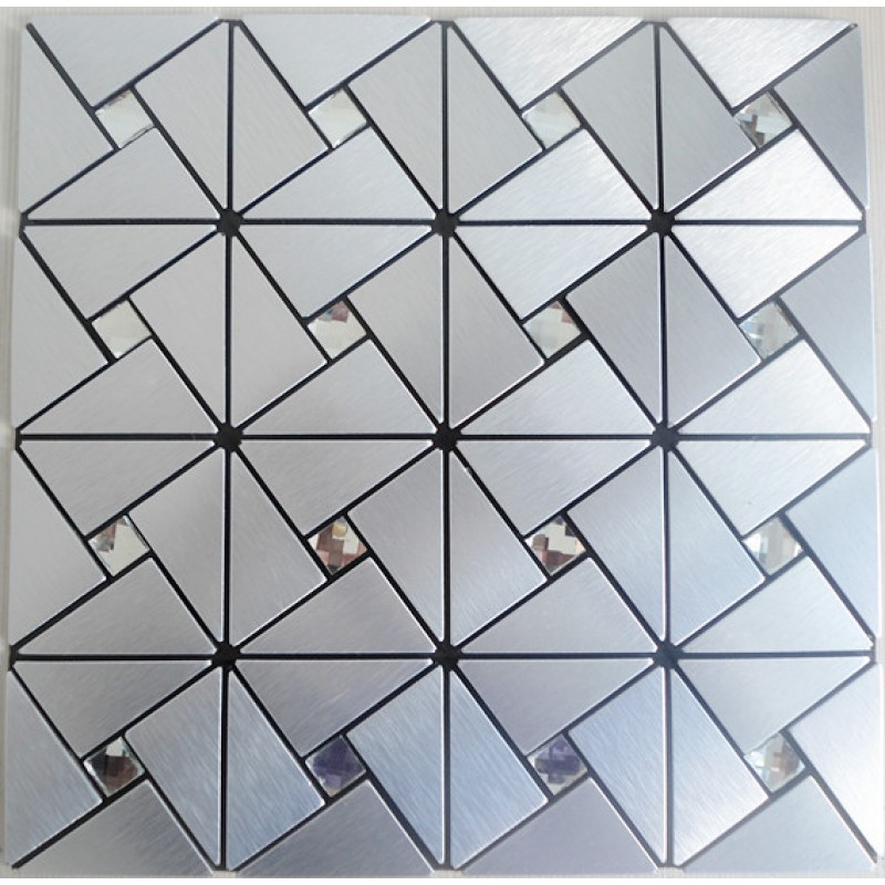 Collection: Metallic Mosaic Tiles; Material: Metal, Aluminum; Color: Silver; Shape: Triangle; Size: 305mmx305mm; Thickness: 4mm