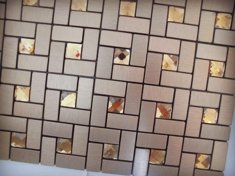 Collection: Metallic Mosaic Tiles; Material: Metal, Aluminum; Color: Bronze; Shape: Strip and Square; Size: 290mmx290mm; Chip Size: 15x15mm, 15*30mm; Thickness: 4mm