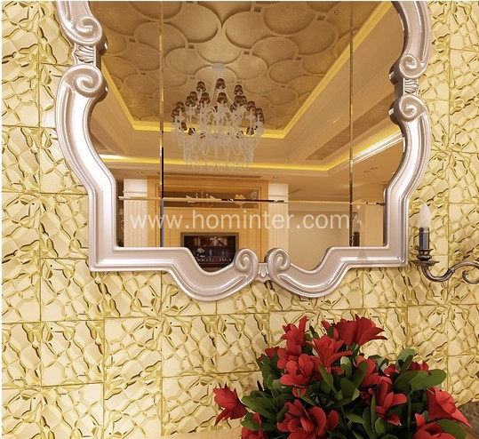 This tile was designed based on glass chips which have both finish: silver coated glass and clear crystal glass. When coating the glass chips, it makes the finish looks like metal, but it is stronger..