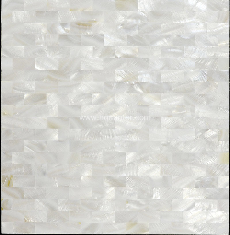 This elegant blend of mini brick size pearl shell are created on a pad board sheet. This minimalistic tile design can achieve a sophisticated, modern look without a clutter feel. Our white mother of pearl shell is modern and minimalistic enough to lend itself to be incorporated into any design, whether it be kitchen backsplashes, bathroom walls (not exposed to direct water), fireplace surrounds and any other feature wall. Not recommended for floors, wet areas or submerged applications.
