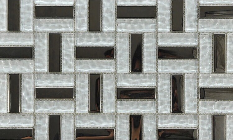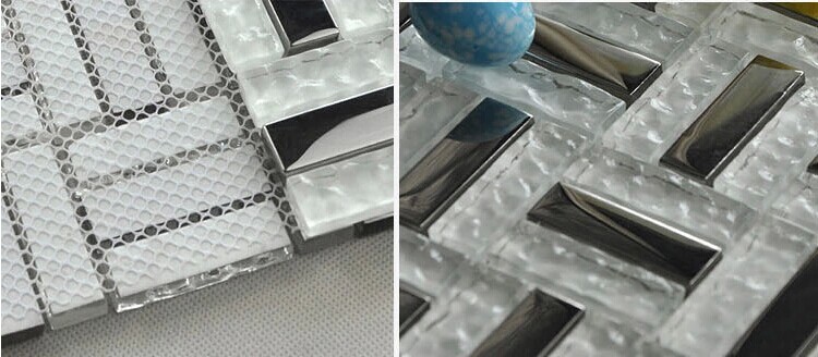 Collection: Glass Mosaic Tiles; Material: Glass; Shape: Strip; Color:Silver; Sheet Size: 300mmx300mm; Chip Size: 15mmx48mm; Thickness: 8mm