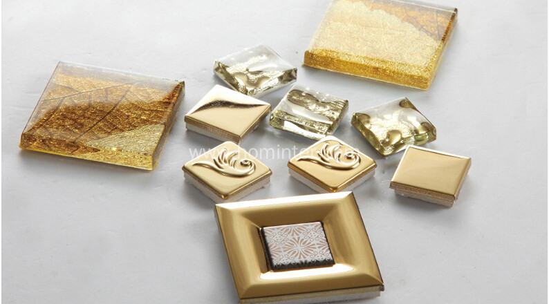 This tile was designed based on glass chips which have both finish: silver coated glass and clear crystal glass. When coating the glass chips, it makes the finish looks like metal, but it is stronger..