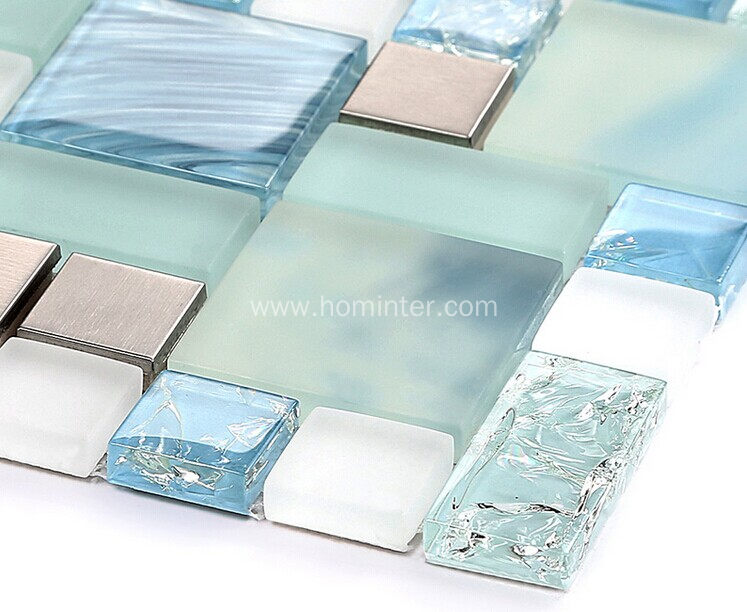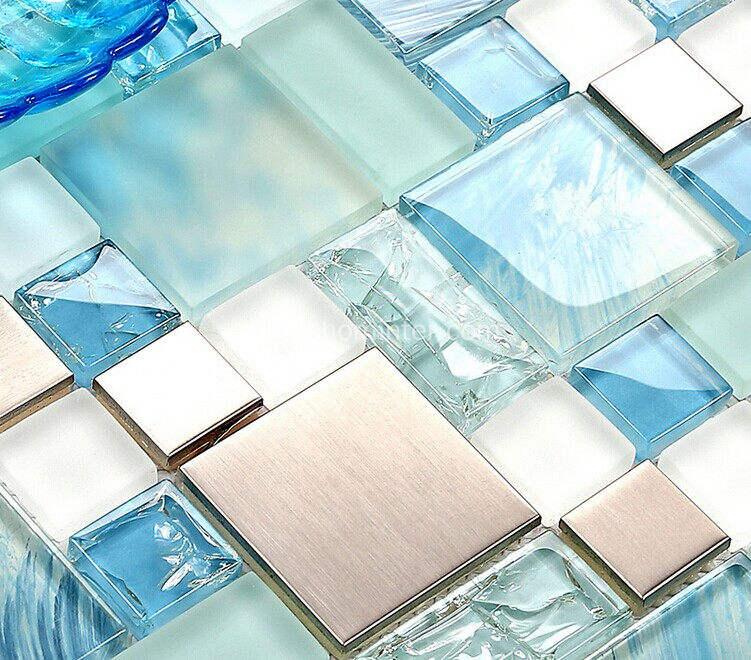 This tile was designed based on glass chips which have both finish: silver coated glass and clear crystal glass. When coating the glass chips, it makes the finish looks like metal, but it is stronger..