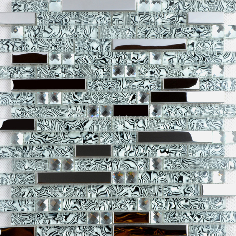 Glass and Metal Linear Mosaic Wall Tile is a combination of glass and stainless steel mesh mounted on 12 inches by 13 inches fiberglass sheet. Good for the kitchen, backsplash, bathroom (outside the shower area), and feature walls at affordable prices without compromising quality and style.