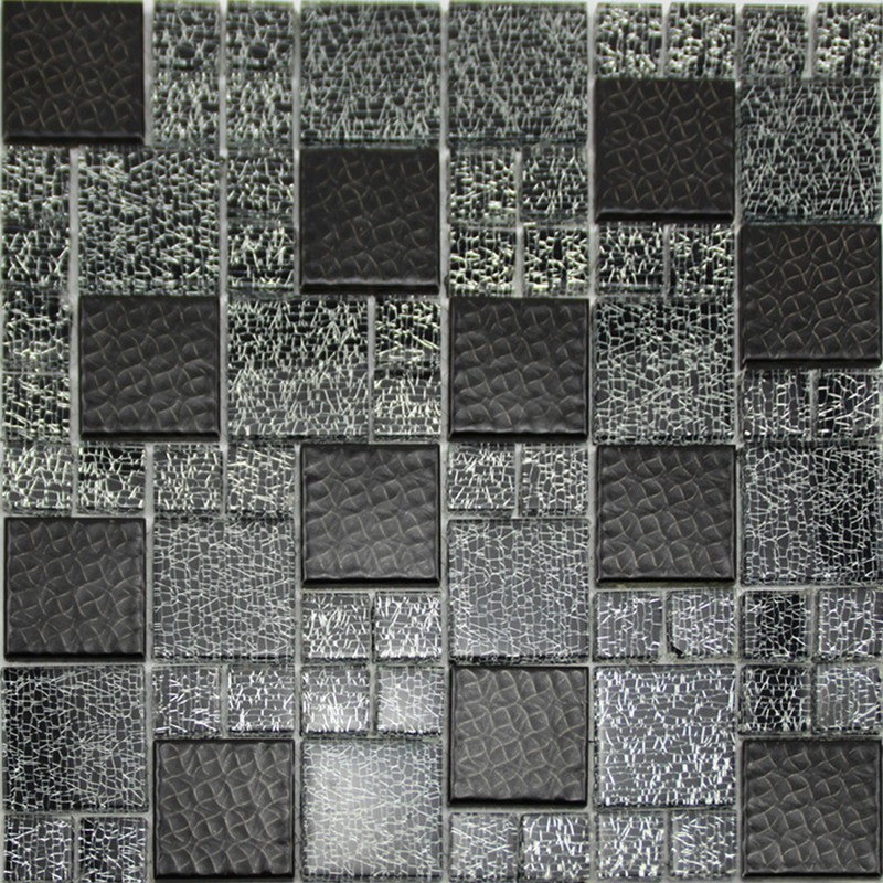 Collection: Porcelain Mosaic Tiles; Material: Porcelain; Shape: Square; Color: Grey and Black; Size: 300x 300 x 8mm; Chip Size: 48x48mm, 23x23mm
