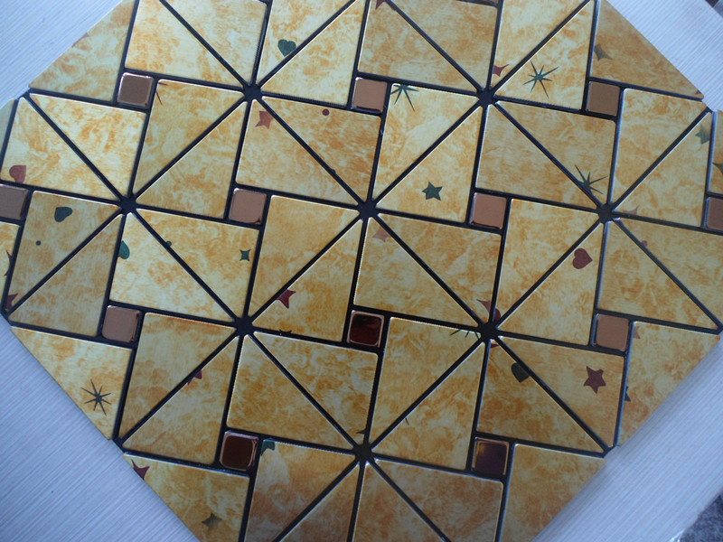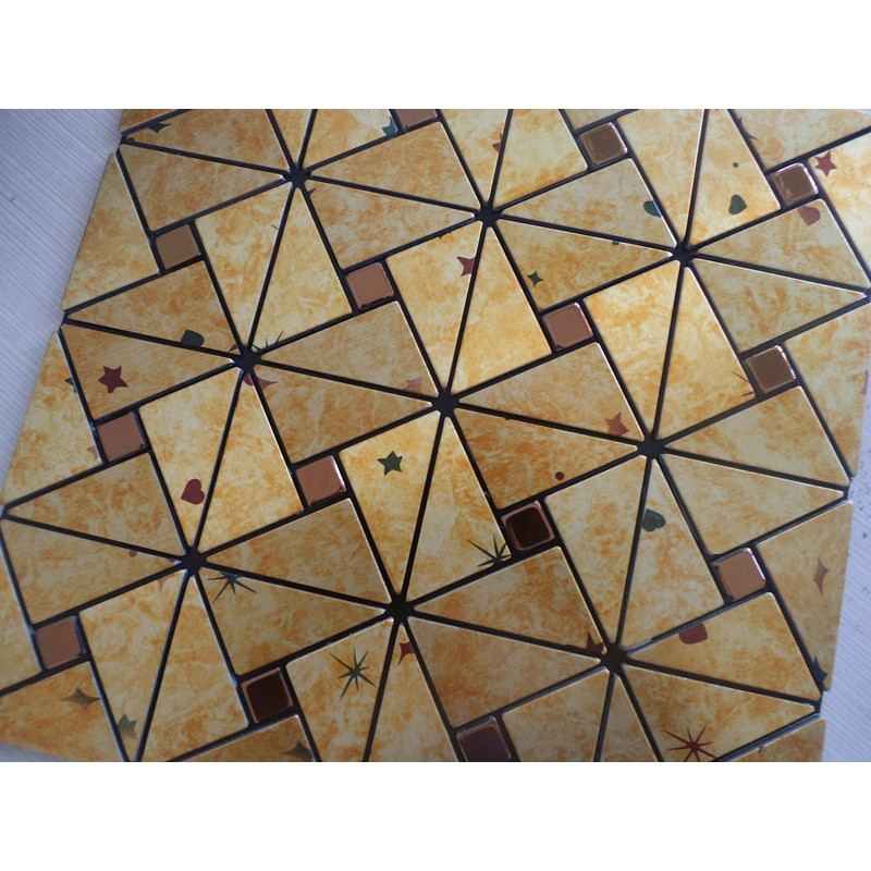 Collection: Metallic Mosaic Tiles; Material: Stainless Steel, Aluminum; Color: Gold; Shape:Triangle; Size: 305mmx305mm; Thickness: 4mm