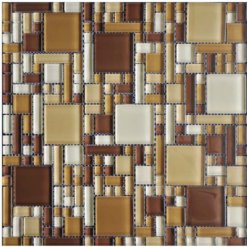 Collection: Glass Mosaic Tiles; Material: Glass; Color: Brown and Grey; Shape: Square and Strip; Sheet Size: 300mmx300mm; Chip Size: 23mmx23mm, 23mmx48mm, 48mmx48mm; Thickness: 8mm