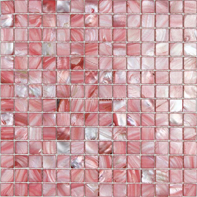 The mother of pearl backsplash stained pink shell mosaic wall tile is based on freshwater shell tiles. Soaking the natural shell chips in a solution impregnated with pink dyes, the tile will be changed to pink colors. The pink mother of pearl tiles are wide use for home decor. Generally, the colors will be stable. However, it's better not to use these dyed tiles at heavy water area in case the colors fading away. It will be very beautiful for kitchen backsplash, bathroom wall ( not in a shower), background wall, and fireplace etc.