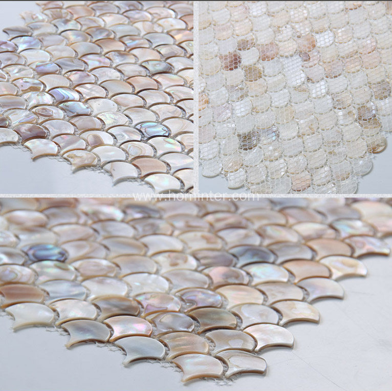 Captivating mother of pearl is presented in an artfully arranged fish scale pattern that will add an iridescent luminosity to your backsplash or bathroom for many years to come. Use this mesh mounted mosaic as field tile or cut into strips to use as an accent to other tiles, create a beautifully multi-dimensionally effect. It is great to install in kitchen backsplashes, bathrooms and any decorated spot in your home
