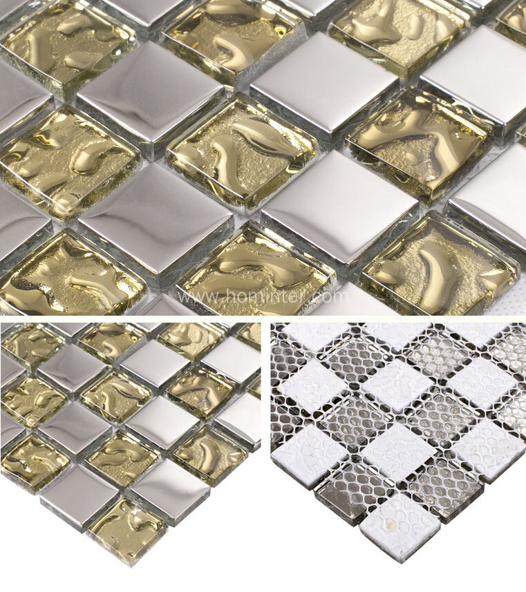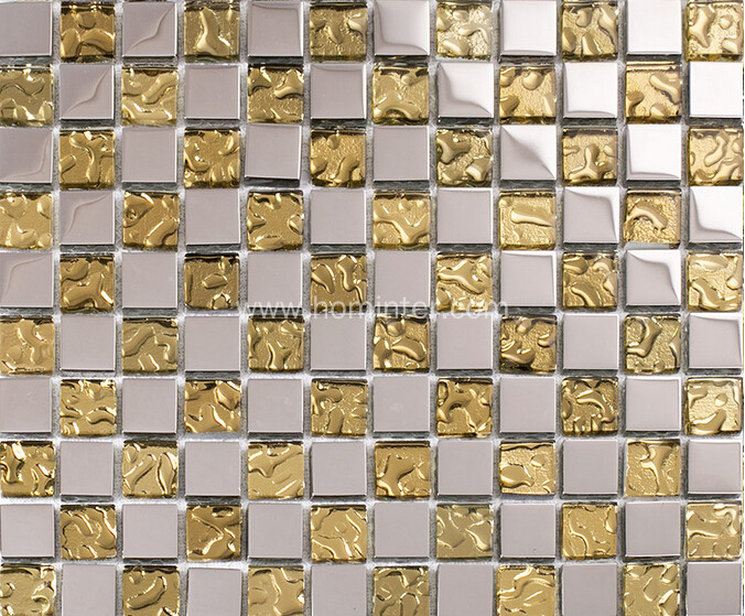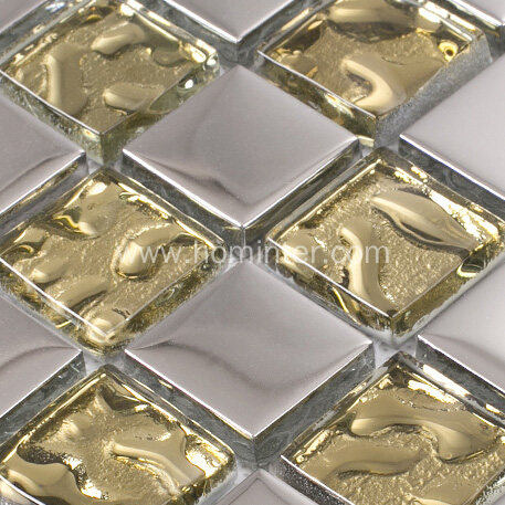 This tile was designed based on glass chips which have both finish: silver coated glass and clear crystal glass. When coating the glass chips, it makes the finish looks like metal, but it is stronger..