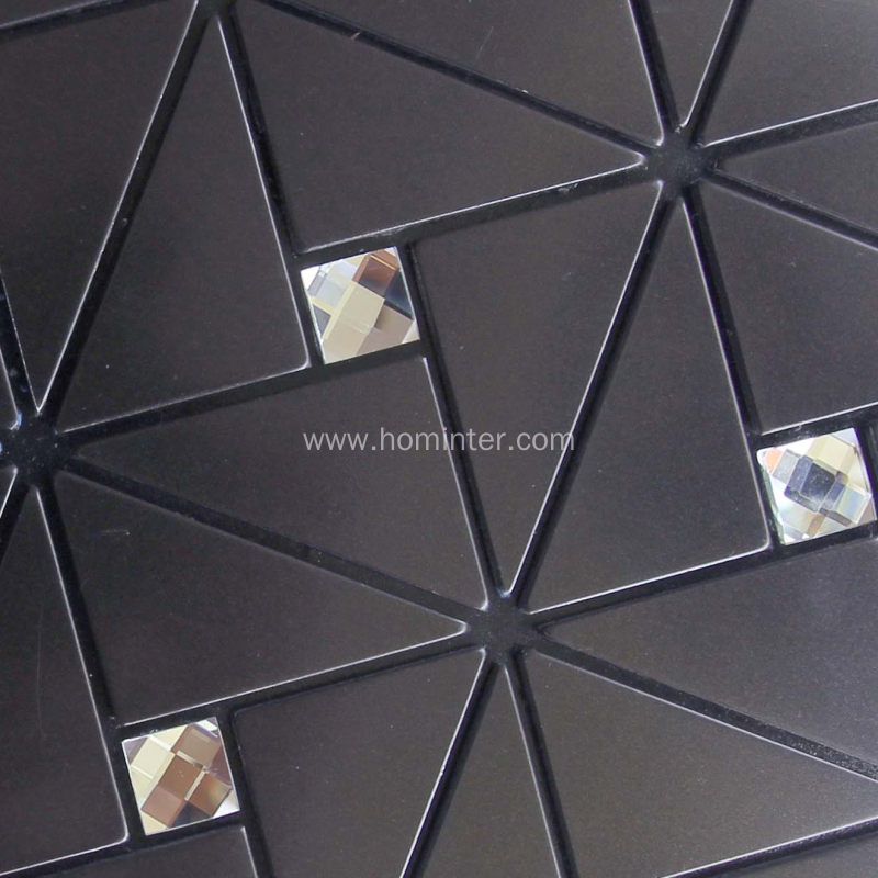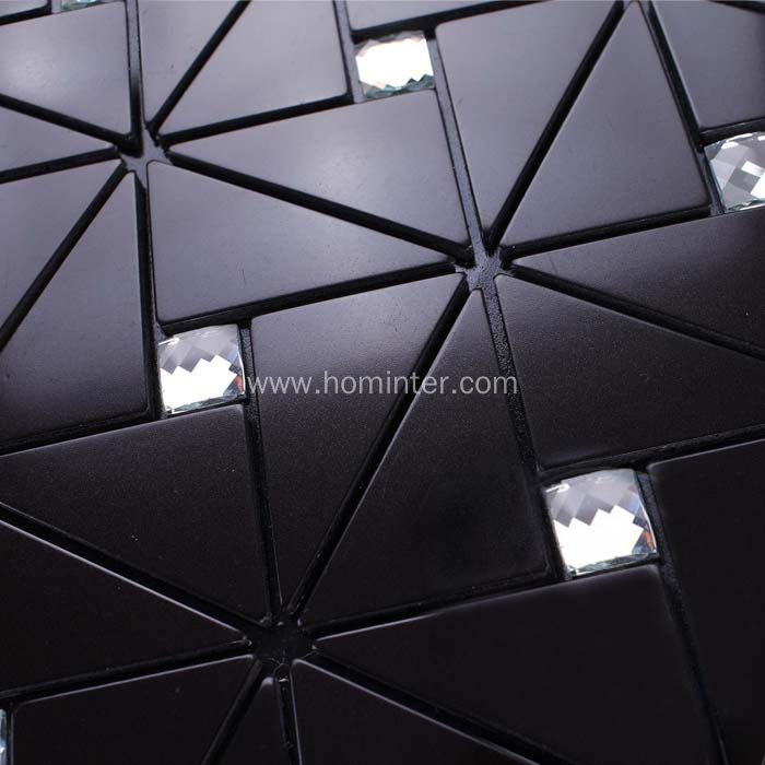 This tile was designed based on glass chips which have both finish: silver coated glass and clear crystal glass. When coating the glass chips, it makes the finish looks like metal, but it is stronger..
