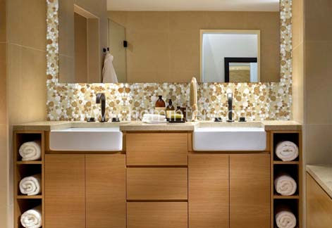 This tile was designed based on glass chips which have both finish: silver coated glass and clear crystal glass. When coating the glass chips, it makes the finish looks like metal, but it is stronger..
