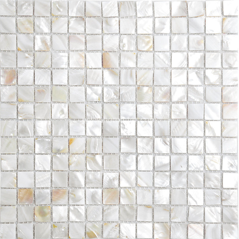 Collection: Mother of Pearl Tile; Material: Shell; Color: Natural white; Shape: Square; Size: 305x305mm; Chip Size: 20x20mm; Thickness: 2mm