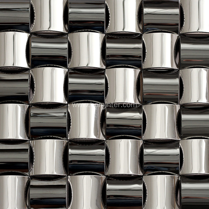 The stainless steel tile black & silver in a basket weave pattern for interior application such as kitchen backsplash, bathroom wall. The mosaic tiles are chrome giving it a contemporary and shiny look. Each sheet measures 12 x 12 (nominal size). Translucent or sanded grout should not be used with stainless steel tile.