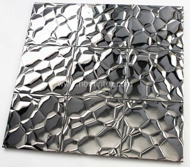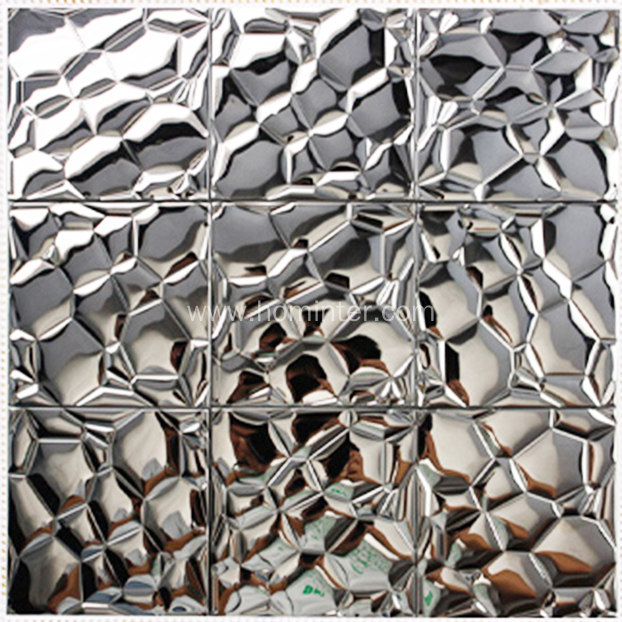 This tile was designed based on glass chips which have both finish: silver coated glass and clear crystal glass. When coating the glass chips, it makes the finish looks like metal, but it is stronger..