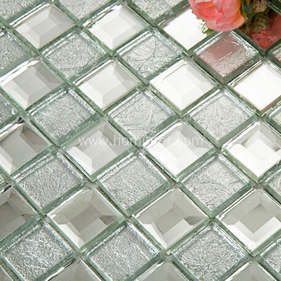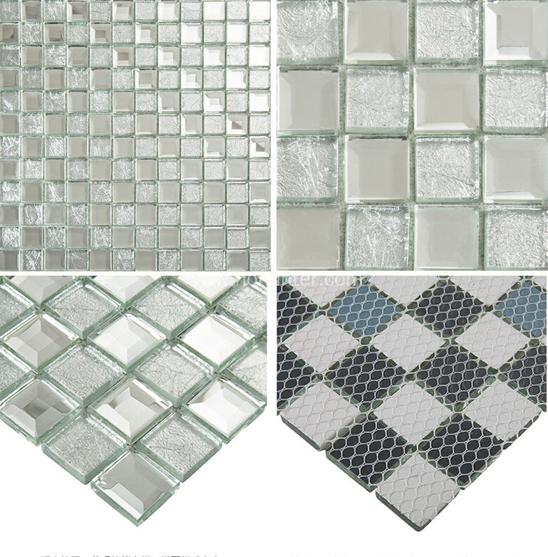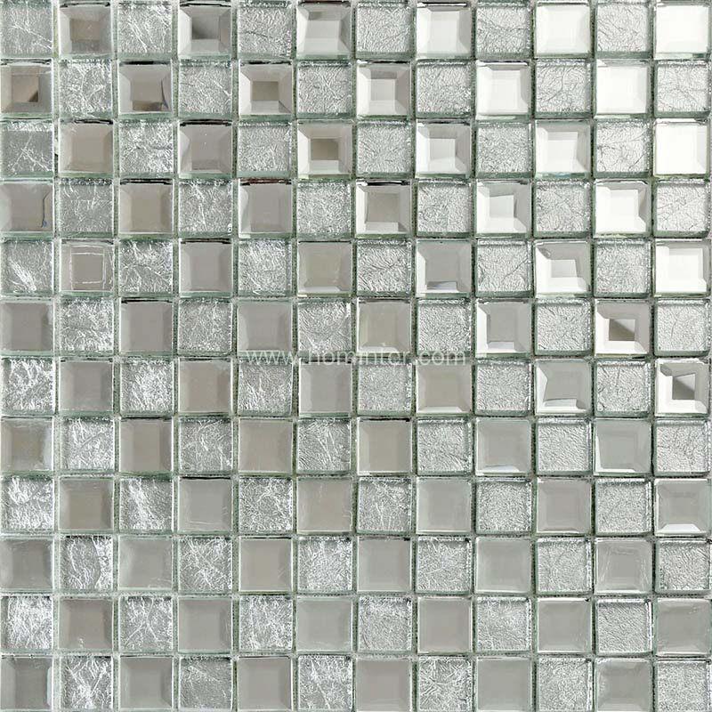 This tile was designed based on glass chips which have both finish: silver coated glass and clear crystal glass. When coating the glass chips, it makes the finish looks like metal, but it is stronger..