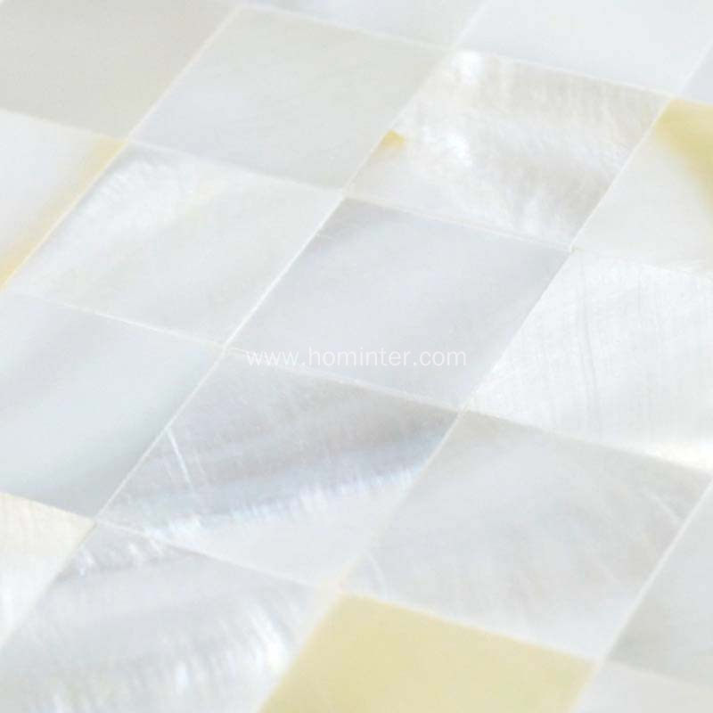 Collection: Light Weight Mother of Pearl Tile;; Material: Shell;; Color: Natural White;; Shape: Square;; Size: 11.8x11.8 In.(300x300mm);; Chip Size: 3/5x3/5 In.(15x15mm);; Thickness: 2mm