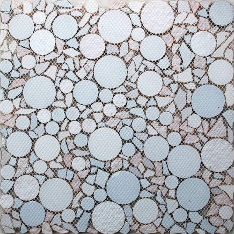 back of the crystal glass tile penny round mosaic wall mesh mounted