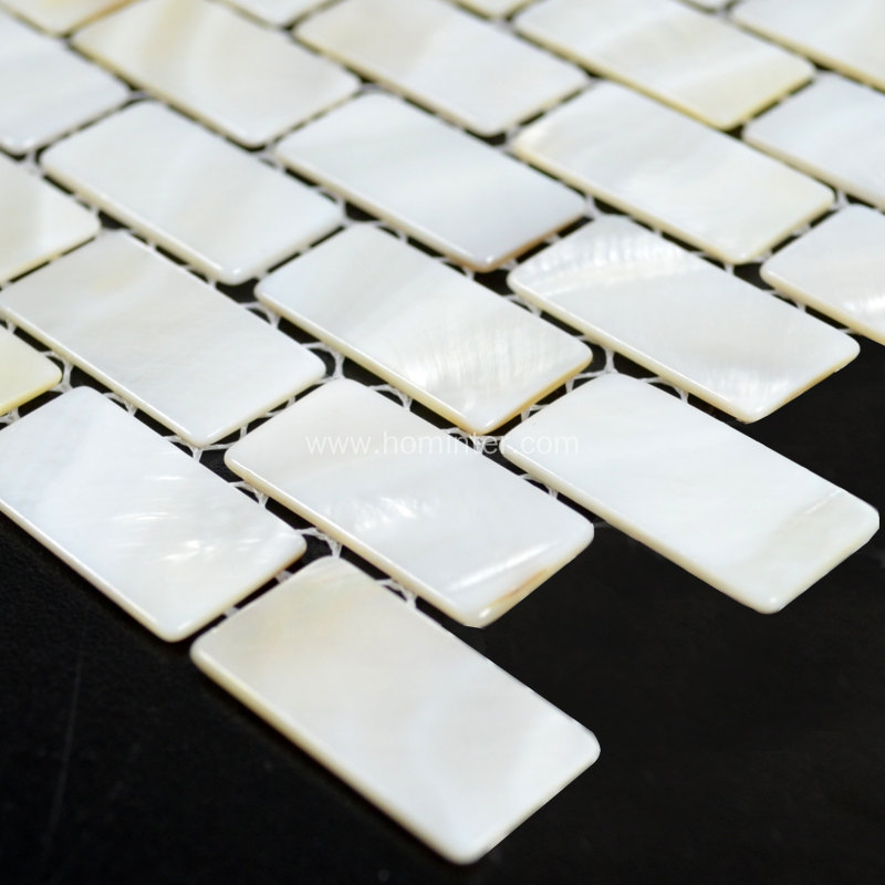 This elegant blend of mini brick size pearl shell are created on a mesh mounted sheet. This minimalistic tile design can achieve a sophisticated, modern look without a clutter feel. Our white mother of pearl shell is modern and minimalistic enough to lend itself to be incorporated into any design, whether it be kitchen backsplashes, bathroom walls (not exposed to direct water), fireplace surrounds and any other feature wall. Not recommended for floors, wet areas or submerged applications.