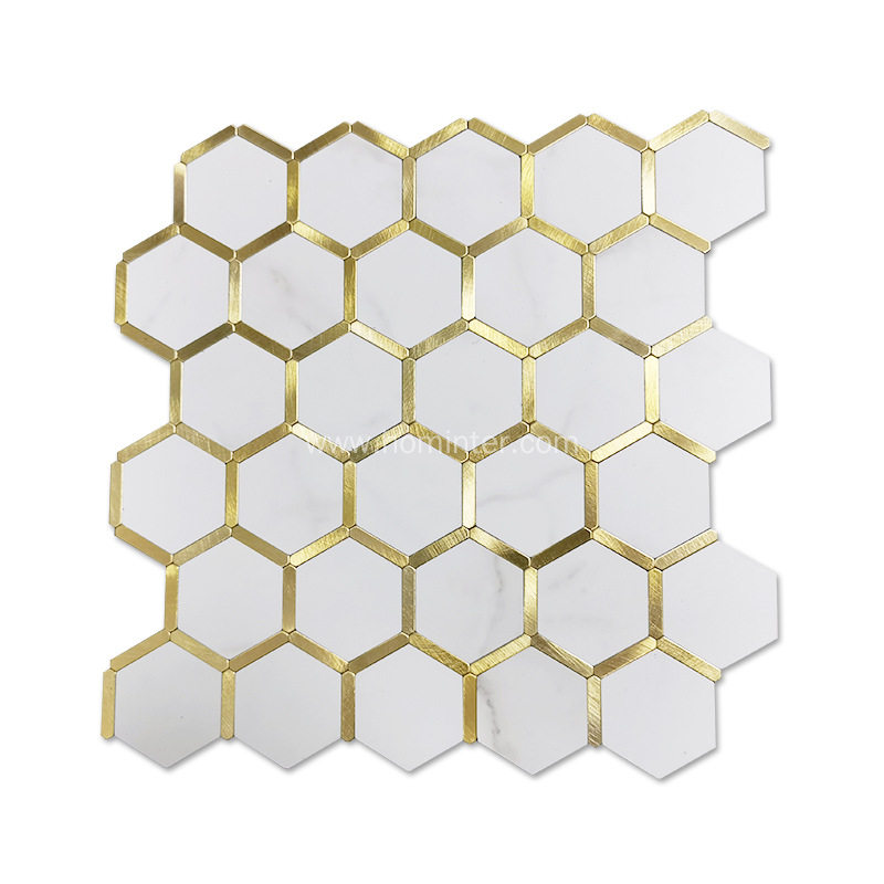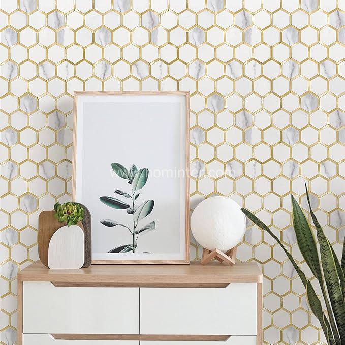 Self-adhesive hexagonal tiles can create a stronger three-dimensional effect. The combination of marble texture and metal elements is full of creativity, modernity and luxury, the good choice for remodeling your house.