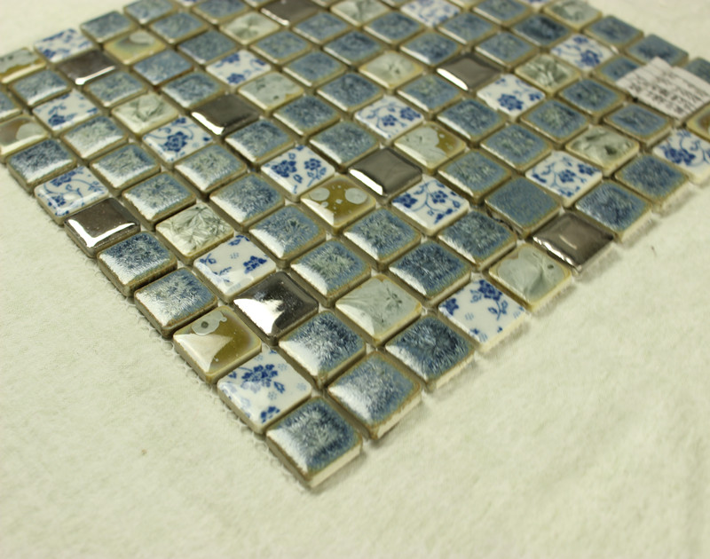 Collection: Porcelain Mosaic Tiles; Material: Porcelain; Shape: Square; Color: Silver and Blue; Size: 300 x 300 x 4 mm; Chip Size: 25 x 25 mm
