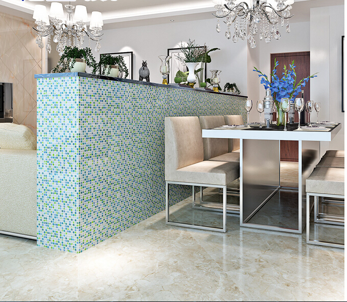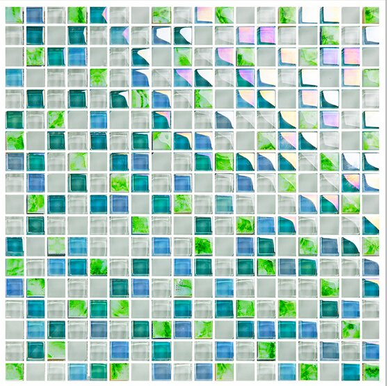 Collection: Glass Mosaic Tiles; Material: Glass; Shape: Square; Color: blue, green and white; Chip Size: 15x15mm; Thickness: 8mm